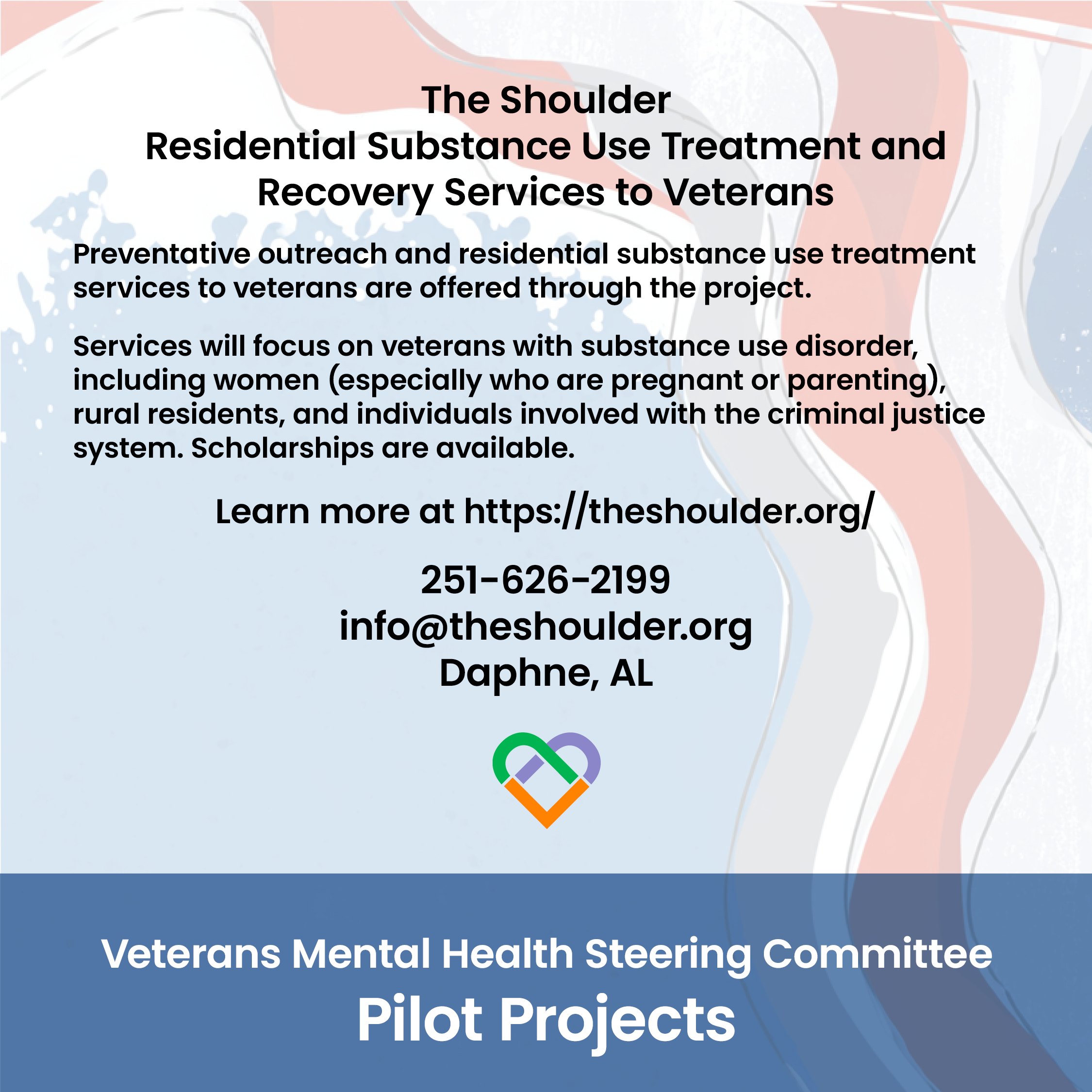 https://theshoulder.org/, or Call 251-626-2199 or email info@theshoulder.org